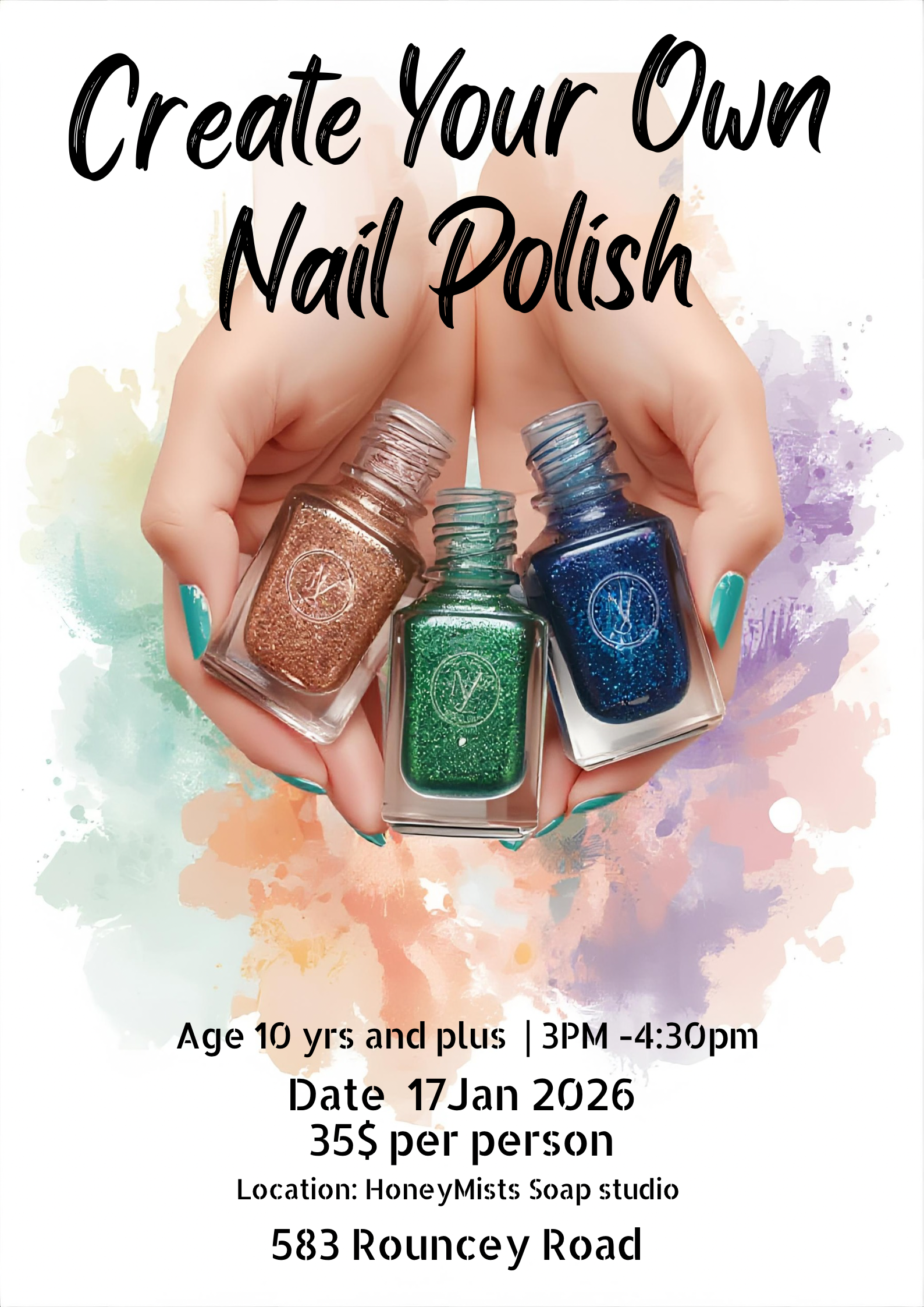 Join us for a fun, creative, and hands-on Nail Polish Making Workshop, where you get to design your very own custom nail polish shades! This workshop is all about creativity, color mixing, and self-expression in a safe and guided environment.